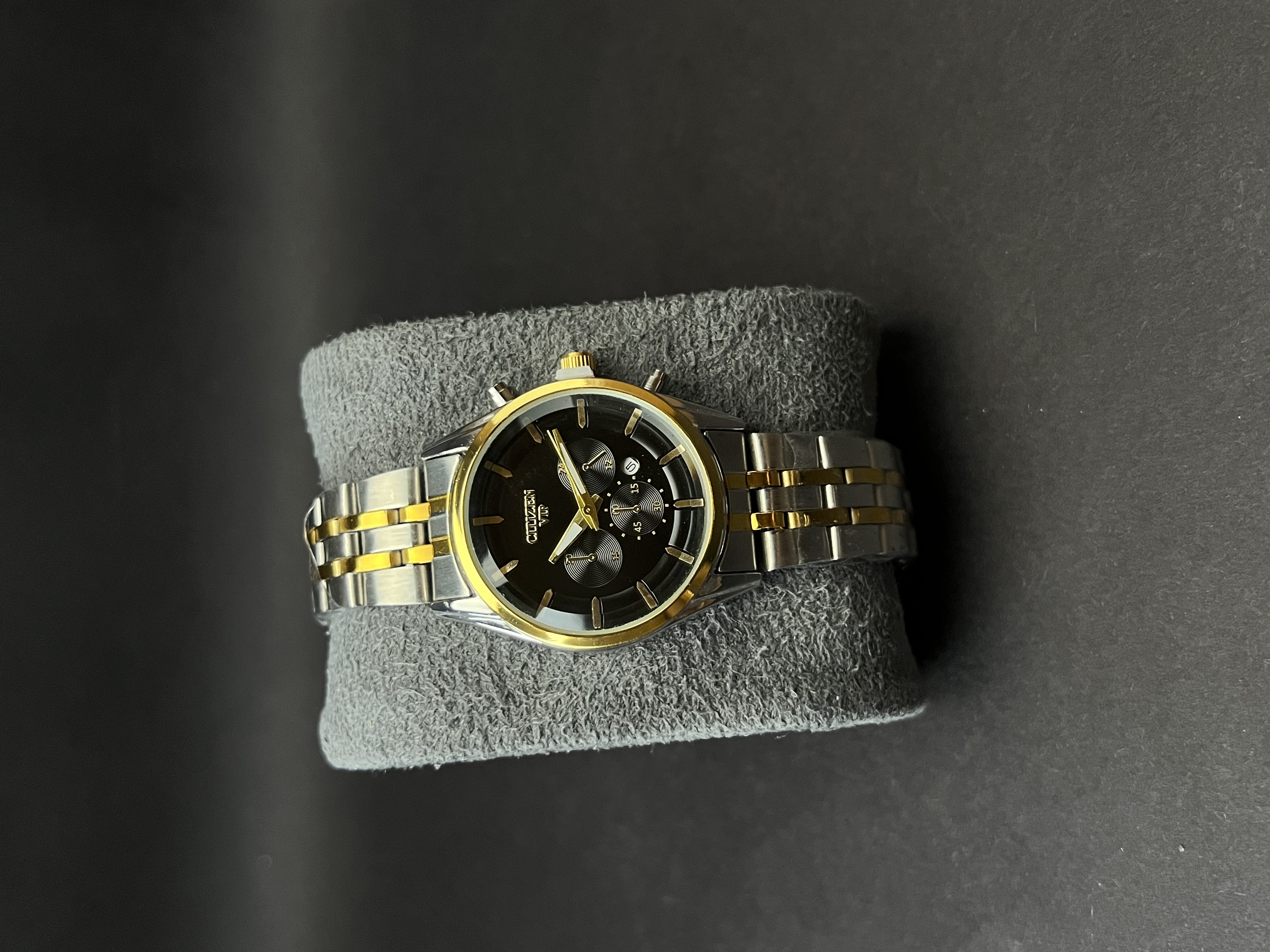 ساعت مچی مردانه ستیزن طرح کرنو بند استیل دو رنگ_قاب فلز صفحه مشکی