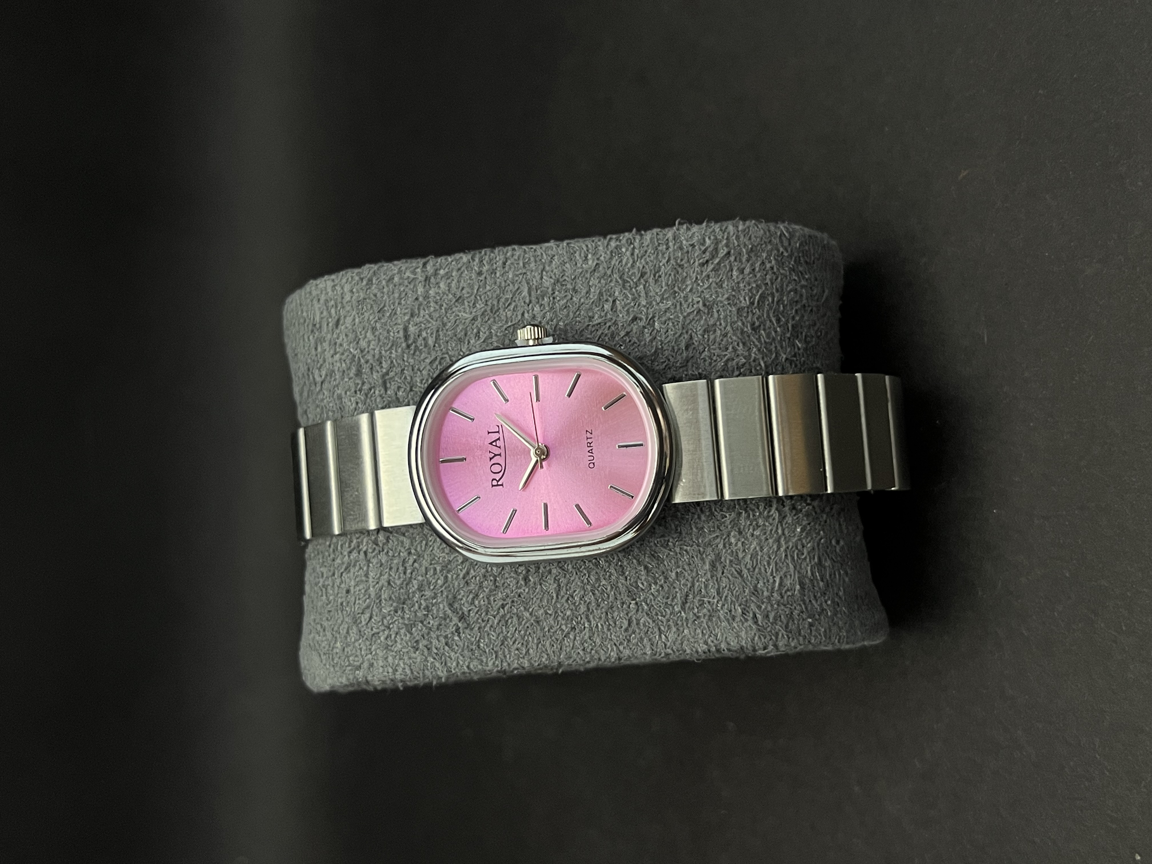 ساعت مچی دخترانه مارک Royal بند استیل نقره ای_قاب بیضی صفحه صورتی