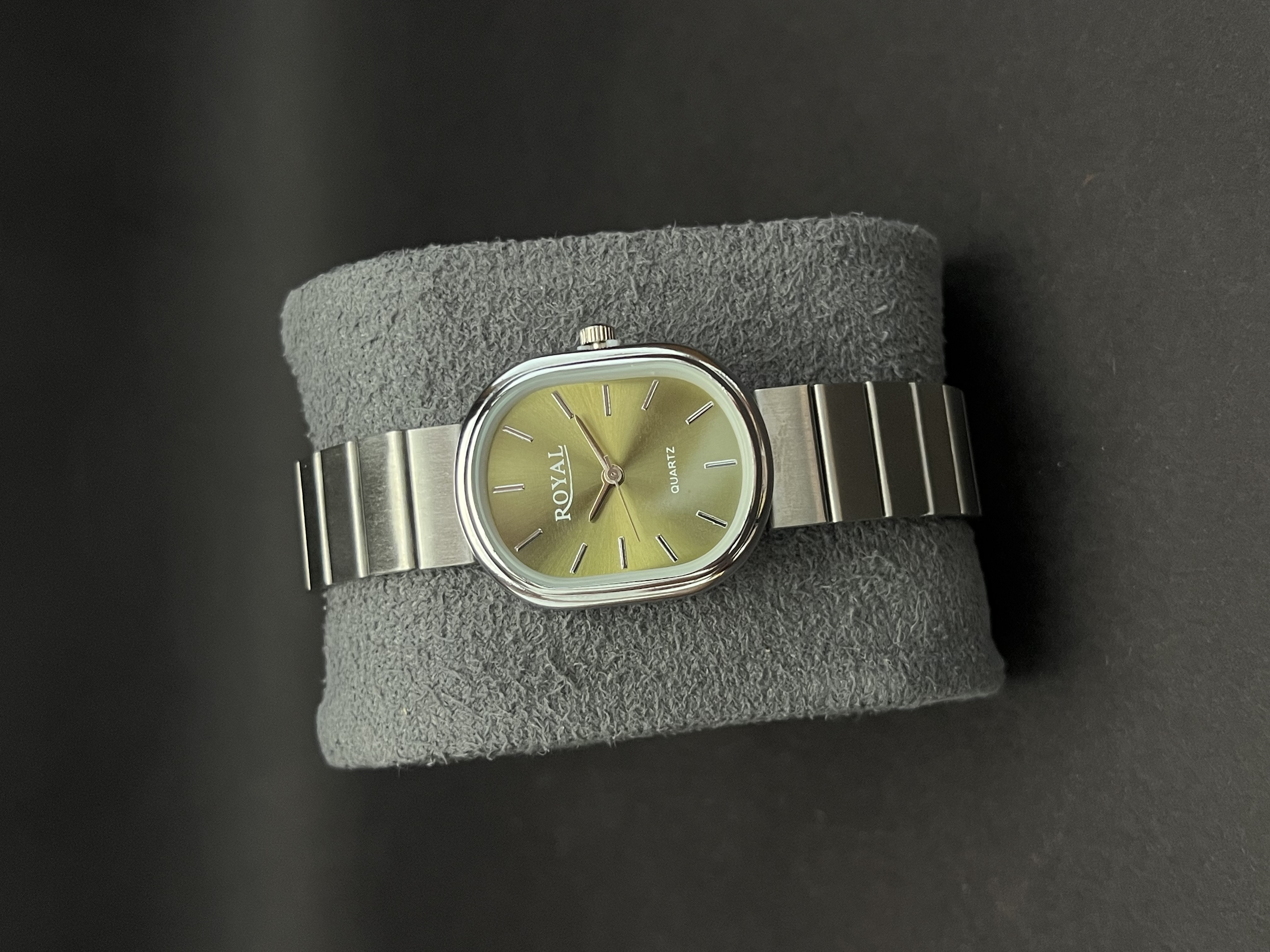 ساعت مچی دخترانه مارک Royal بند استیل نقره ای_قاب بیضی صفحه سبز