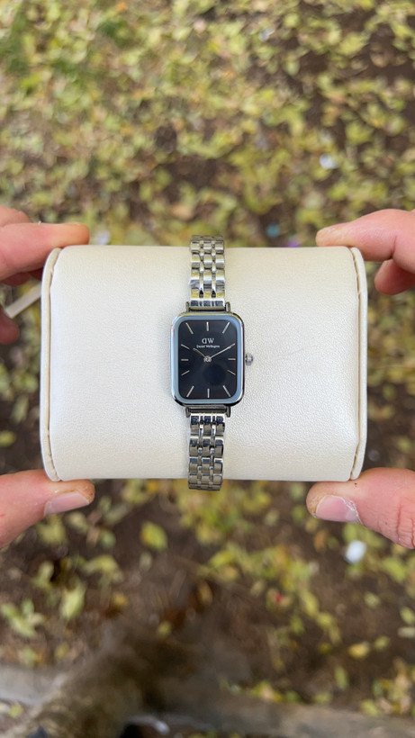 ساعت زنانه DW مدل قاب مستطیلی بند نقره ای _طلایی صفحه مشکی