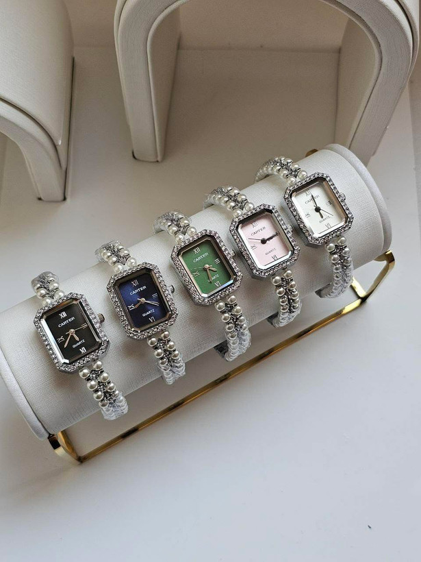ساعت زنانه Carter بند مرواریدی قاب مستطیل -رنگ نقره ای
