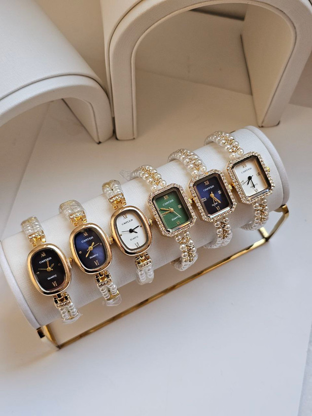 ساعت زنانه Carter بند مرواریدی قاب مستطیل و بیضی -آبکاری عالی