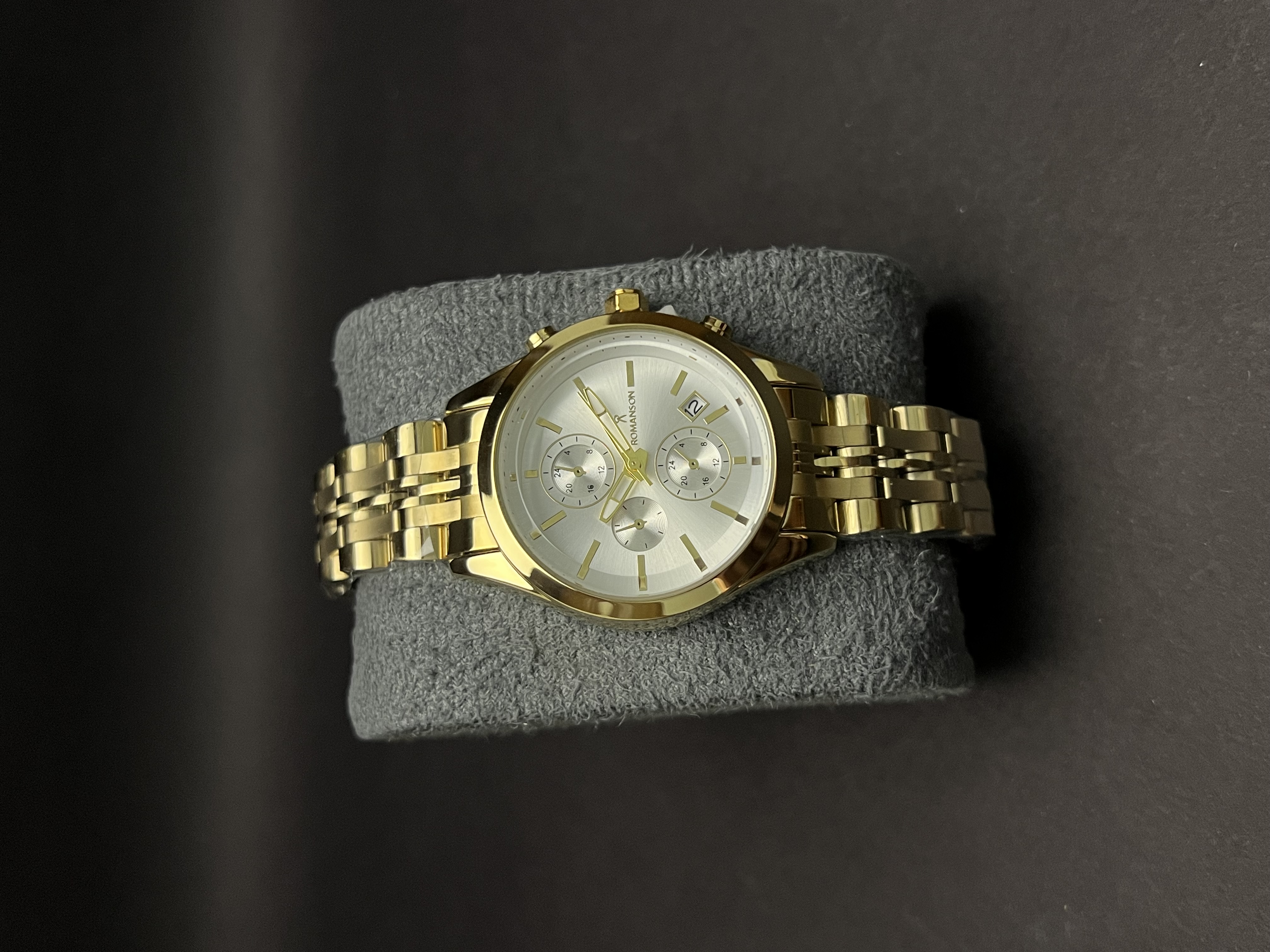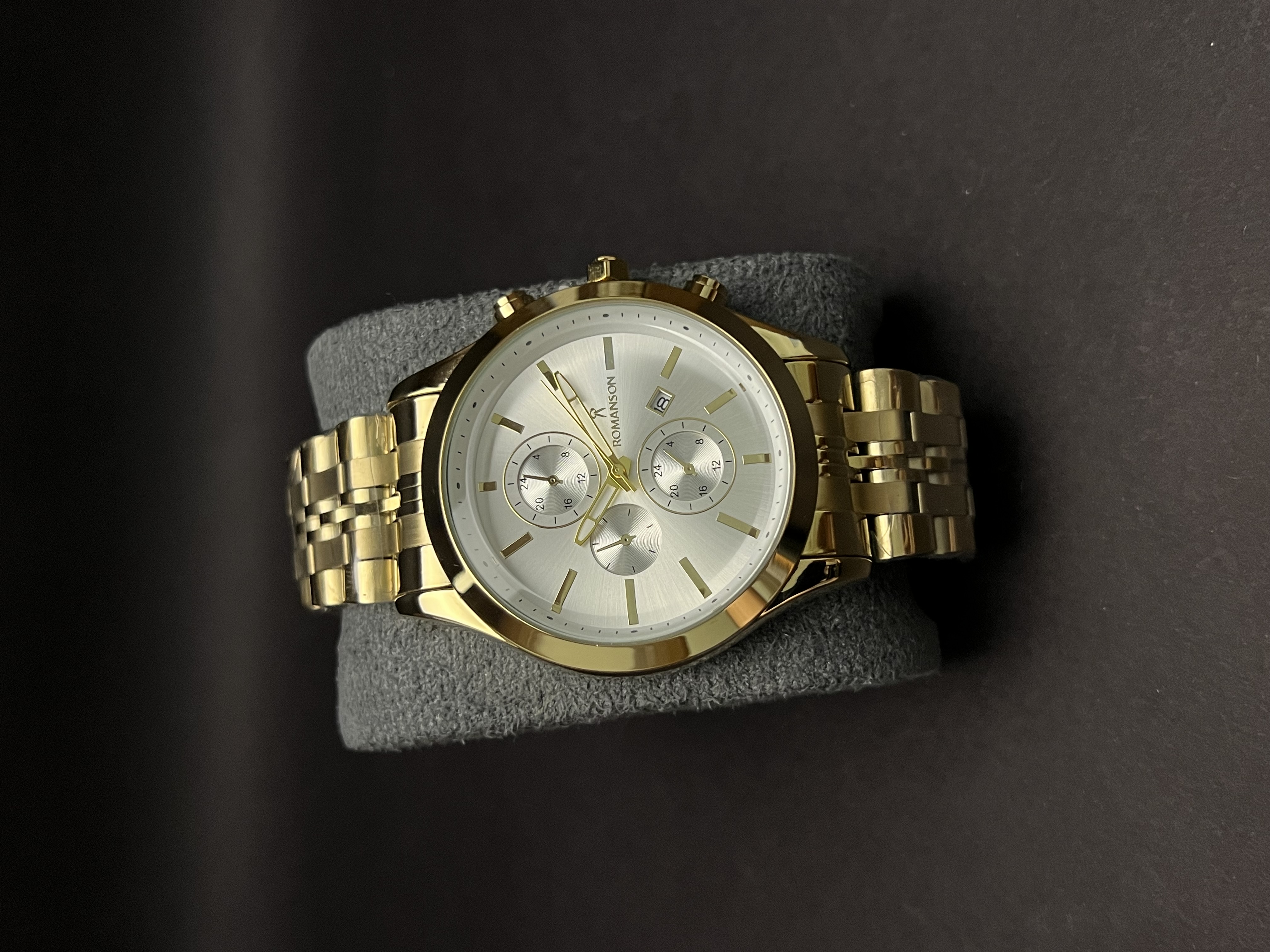 ساعت مچی ست رومانسون طلایی طرح کرنو فول استیل شیشه برجسته-ضدآب استخری