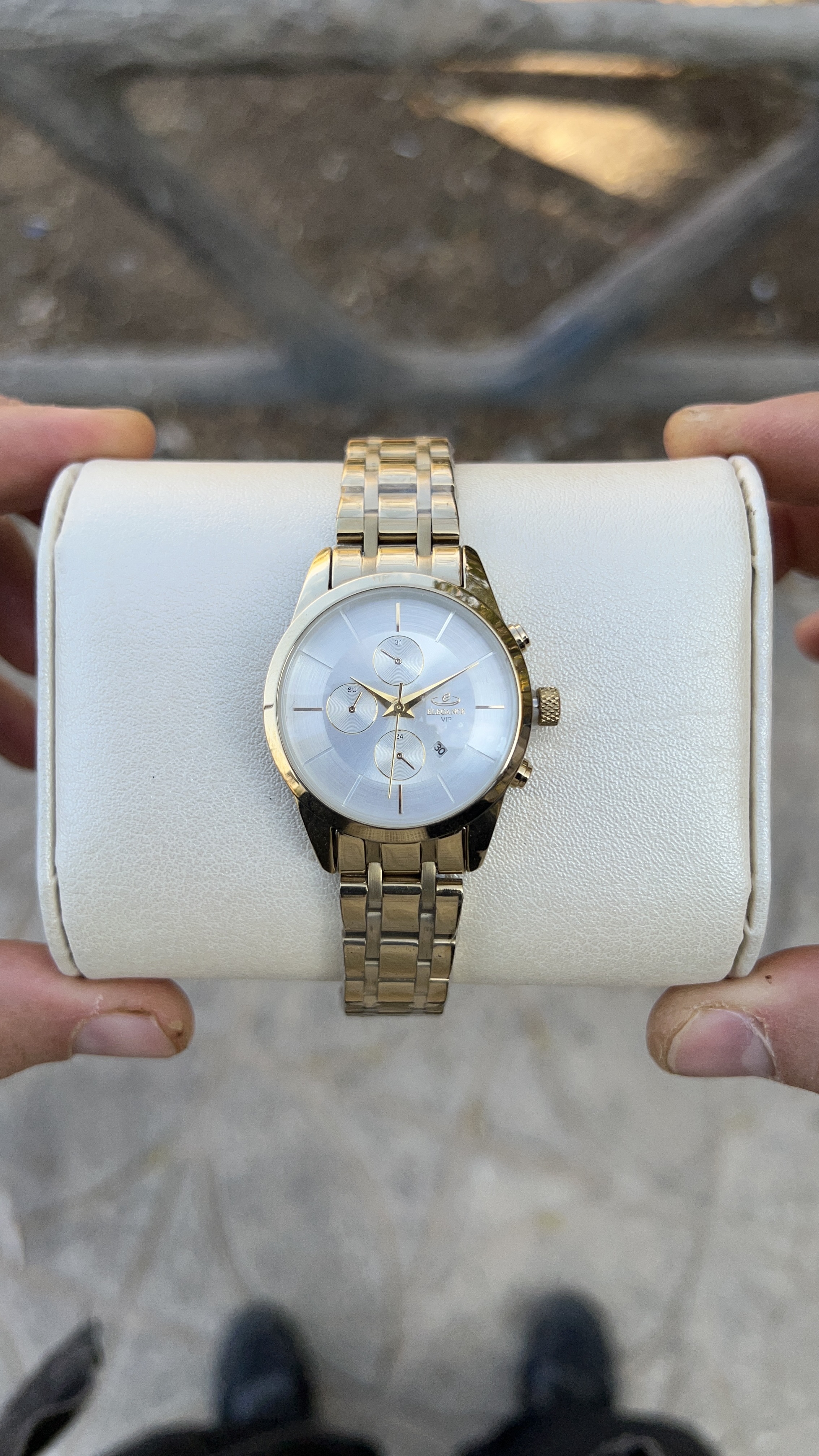 دستهبندی: ساعت زنانهجنس بند: استیلجنس فریم: استیلرنگ بند: طلاییرنگ صفحه: سفیدضدآب : در حد شستشوی دستفریم قاب : دایرهموومنت : ژاپنیروز شمار : داردنمایش بیشتر